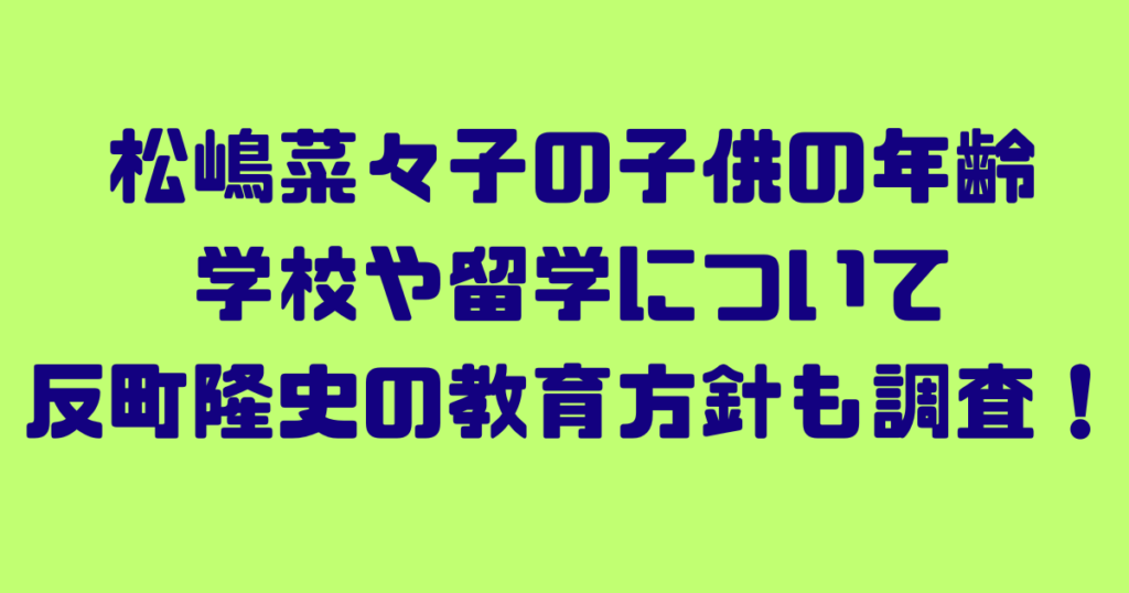 松嶋菜々子の子供の年齢と学校は?留学や反町隆史の教育方針も調査!