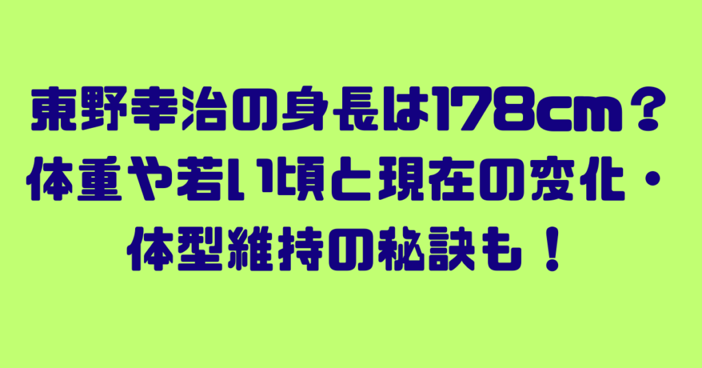 お笑い芸人として長年活躍し、司会者としても絶大な人気を誇る東野幸治さん。 そんな東野幸治さんですが、身長は本当に178cmあるのでしょうか。 また、若い頃と現在で身長や体型に変化はあったのか、とっても気になりますよね。 今回は、東野幸治さんの身... -