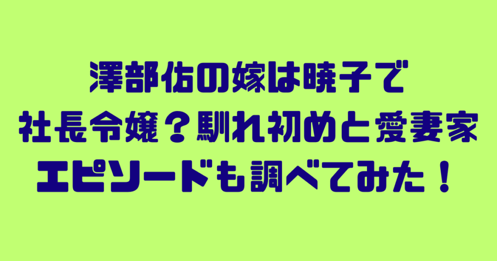 澤部佑の嫁は暁子で社長令嬢?馴れ初めと愛妻家エピソードも調べてみた!
