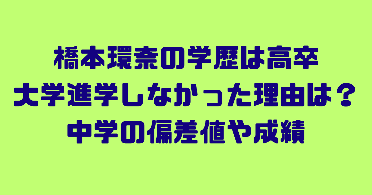 また、多くの芸能人が大学進学を選ぶ中、橋本環奈さんが進学しなかった理由も気になりますよね。