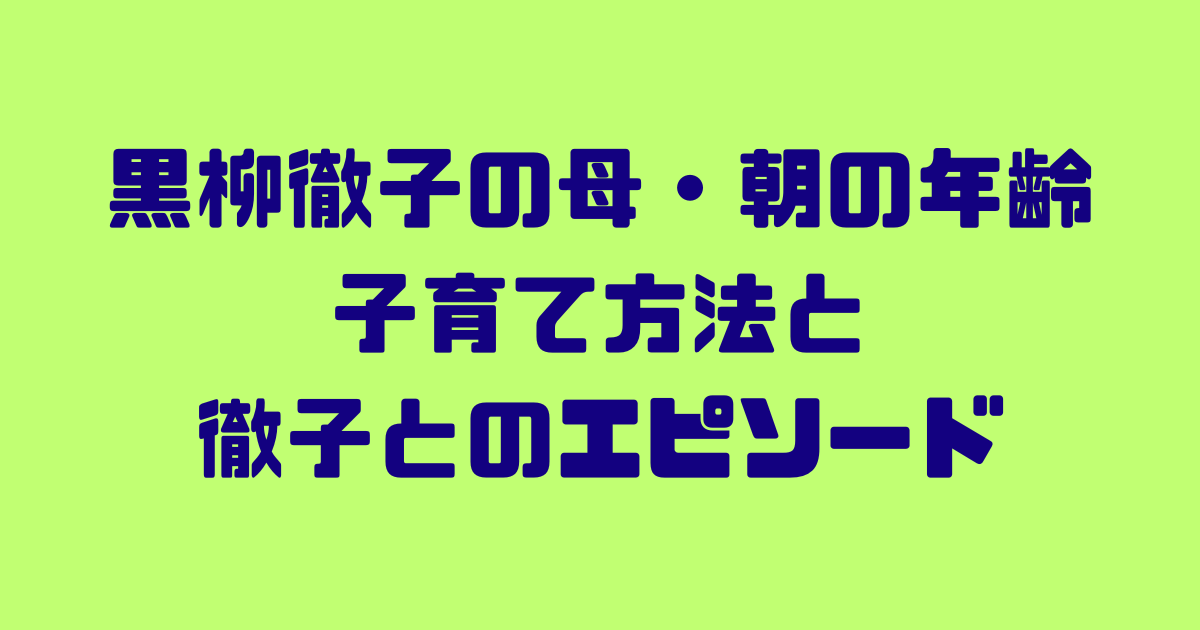 今回は黒柳徹子さんのお母様について、年齢や朝の子育て方法、感動的なエピソードをご紹介します。