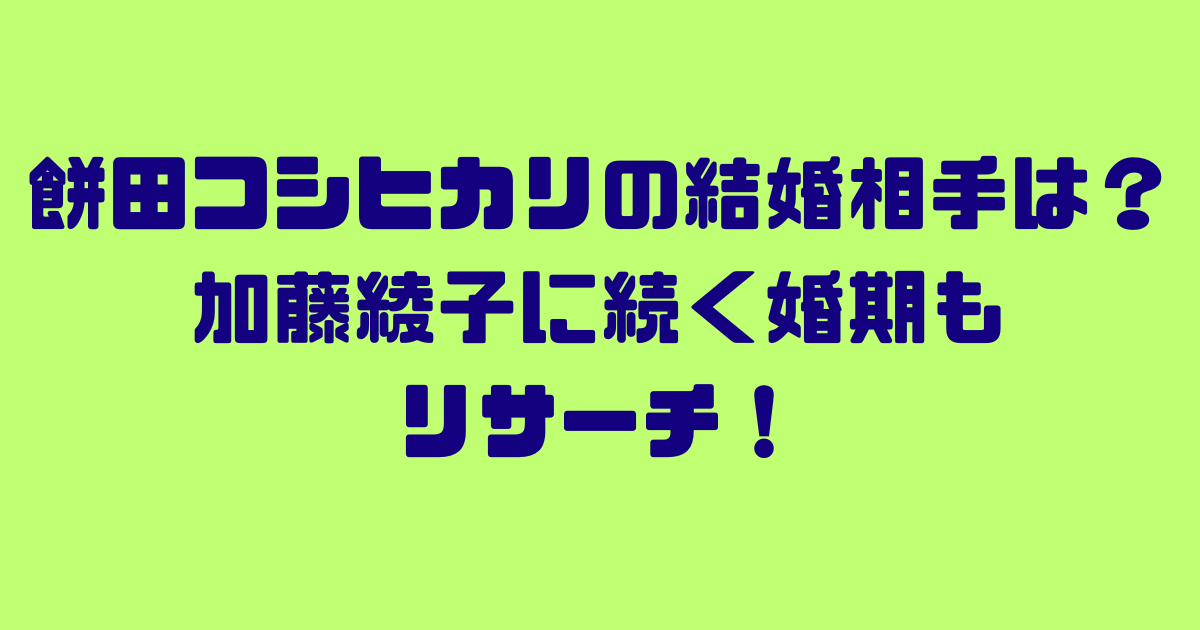 そんな餅田コシヒカリさんの結婚相手や婚期について、気になる方も多いのではないでしょうか。