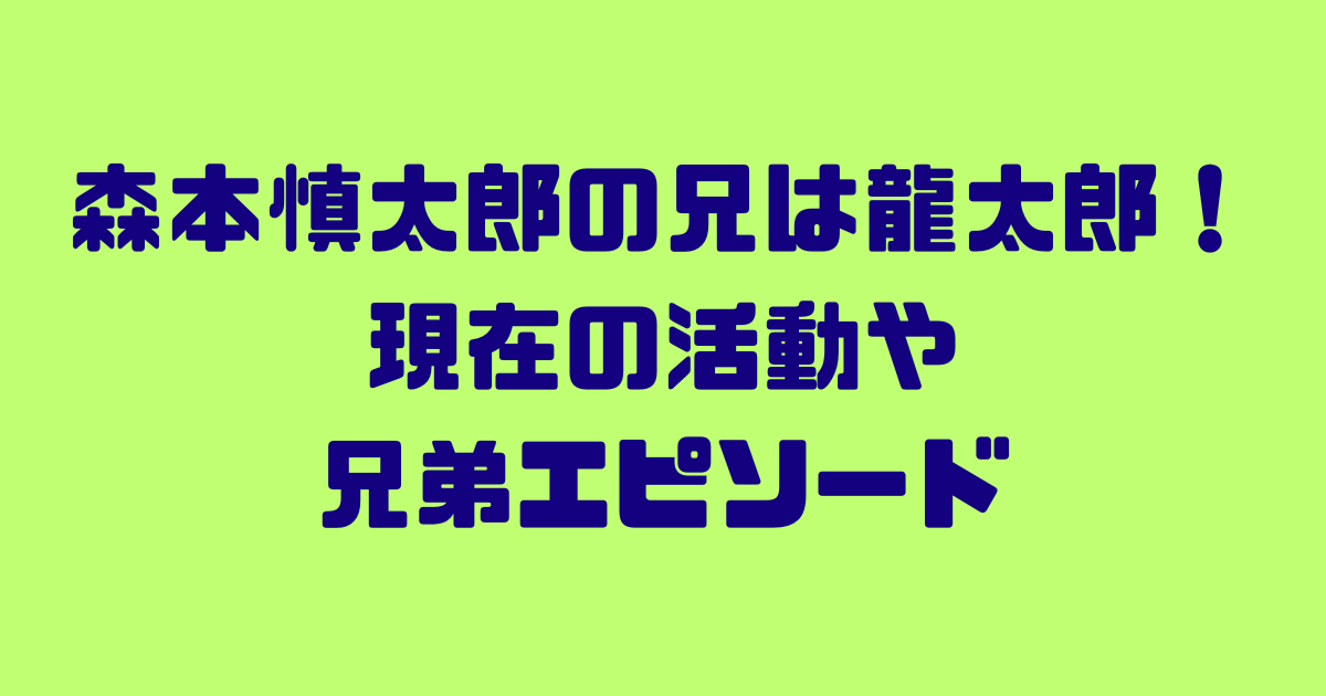 森本慎太郎さんのお兄さんは、森本龍太郎さんです。