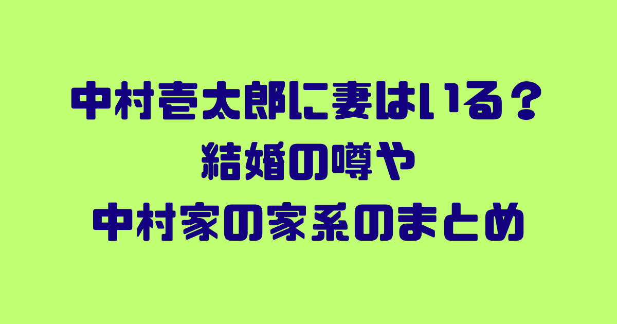 そんな中村壱太郎さんですが、結婚しているのでしょうか。