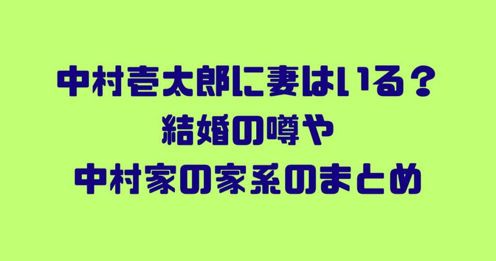中村壱太郎に妻はいる?結婚の噂や中村家の家系をまとめてみた!