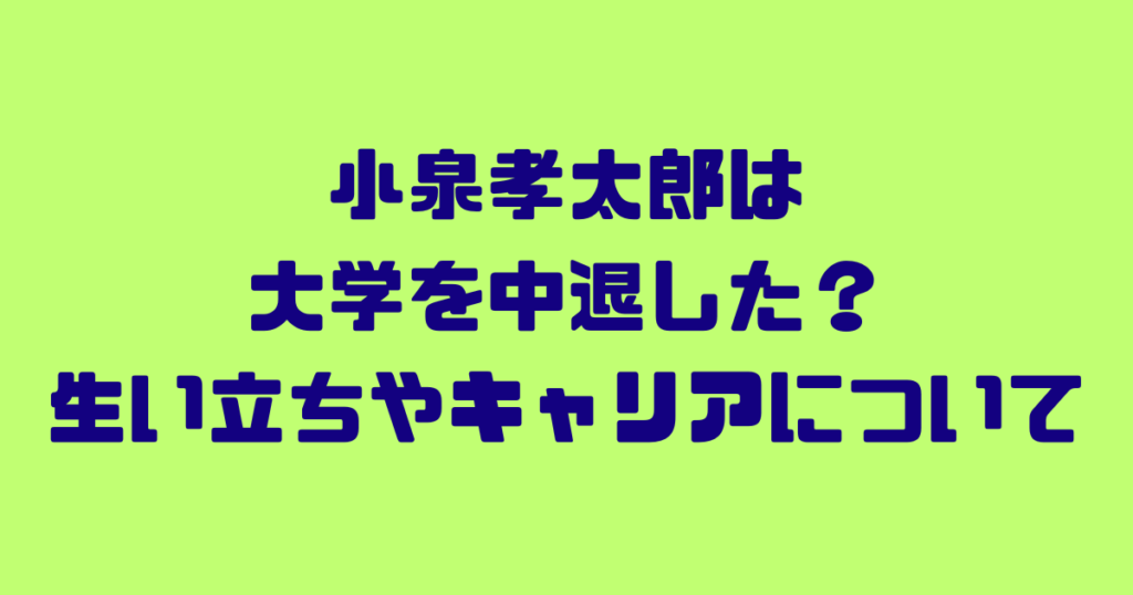 多彩な役柄をこなす実力派俳優として知られる小泉孝太郎さん。 そんな小泉孝太郎さんですが、大学を中退したという噂があるのをご存知でしょうか? また、小泉孝太郎さんの生い立ちやキャリアについても気になりますよね。 今回は、小泉孝太郎さんの学歴や... -