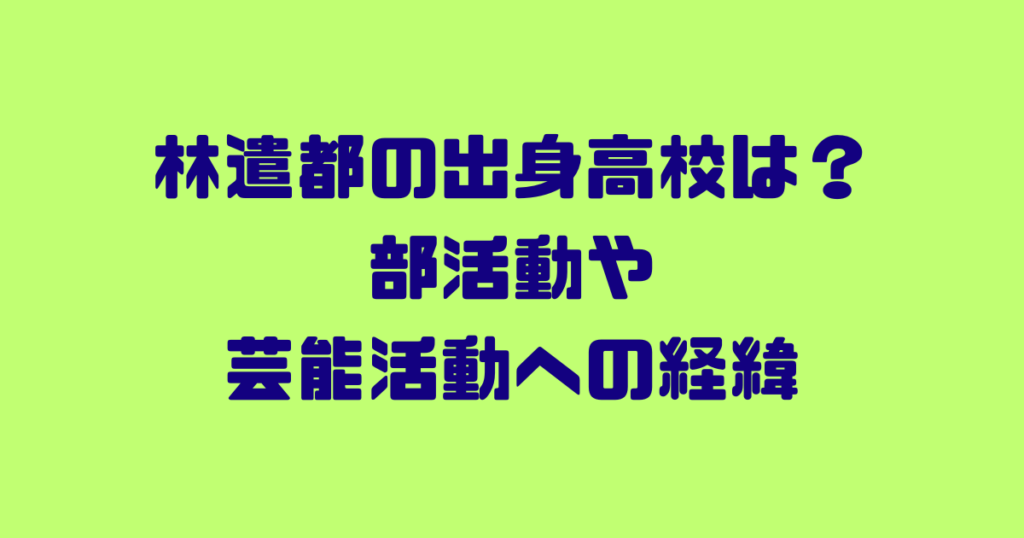 多彩な役柄をこなす実力派俳優として知られる林遣都さん。 そんな林遣都さんですが、出身高校や学生時代の様子はどのようなものだったのでしょうか。 今回は、林遣都さんの出身高校や部活動、そして芸能界デビューまでの経緯について徹底的にリサーチして... -