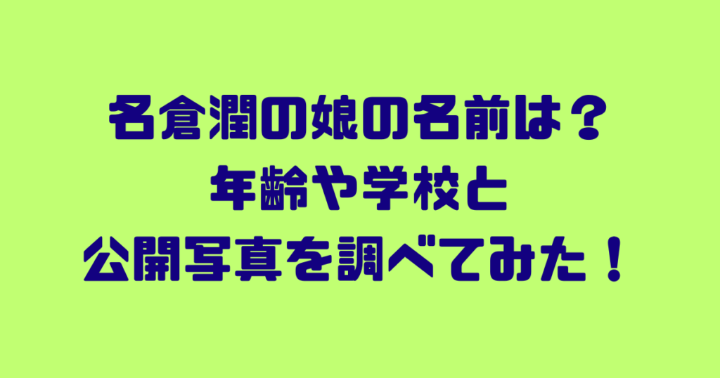 名倉潤の娘の名前は?年齢や学校と公開写真を調べてみた!
