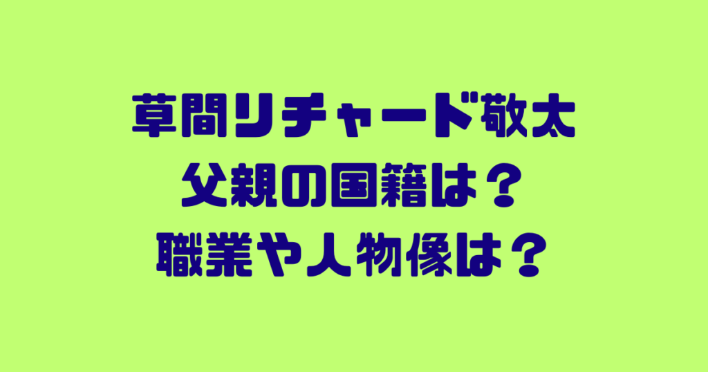 草間リチャード敬太の父親の国籍は?職業や人物像を調べてみた!