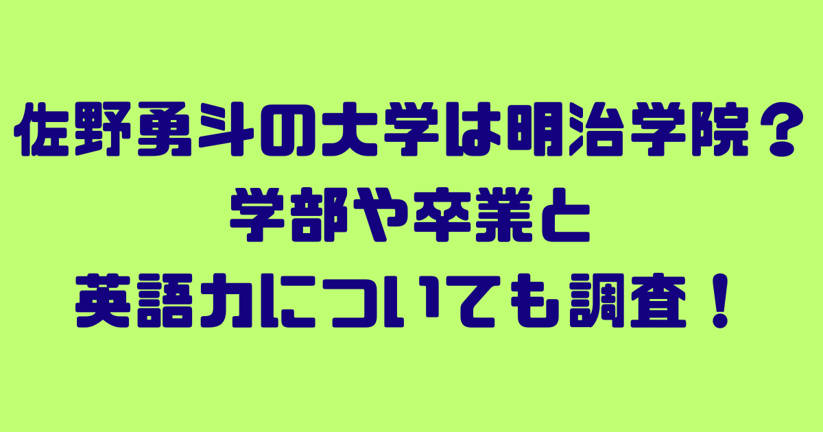今回は佐野勇斗さんの大学や学部、卒業、そして英語力についてご紹介します。