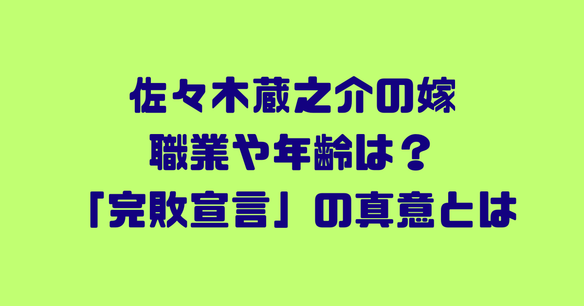 そんな佐々木蔵之介さんですが、結婚発表時に話題になった「完敗宣言」とはどのような宣言だったのでしょうか。